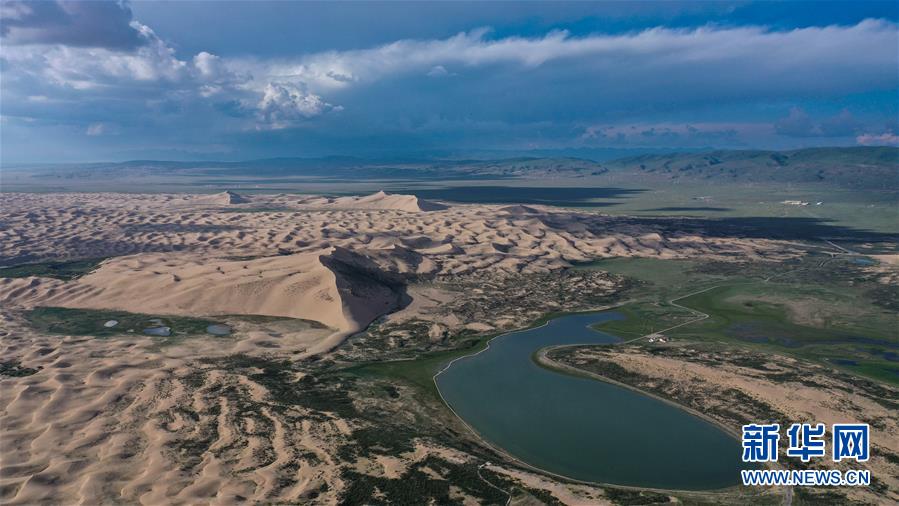 這是青海湖沙島風(fēng)光(7月28日攝,無(wú)人機(jī)照片)。盛夏傍晚,位于青海湖東北部的沙島,島內(nèi)湖泊星羅棋布,沙丘連綿起伏,風(fēng)景別致。金沙與湖水掩映,在陽(yáng)光的勾勒下形成一幅美麗的畫(huà)卷。新華社記者張宏祥攝