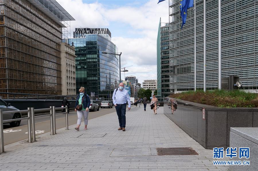 7月29日,在比利時(shí)布魯塞爾,戴口罩的行人經(jīng)過(guò)歐盟委員會(huì)總部大樓。新華社記者張鋮攝