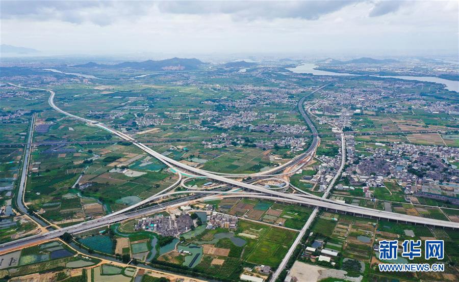 這是已經(jīng)建設完成的潮汕環(huán)線高速公路上北互通立交,沈海高速公路從該互通立交下面穿過(無人機照片,7月31日攝)。新華社記者劉大偉攝