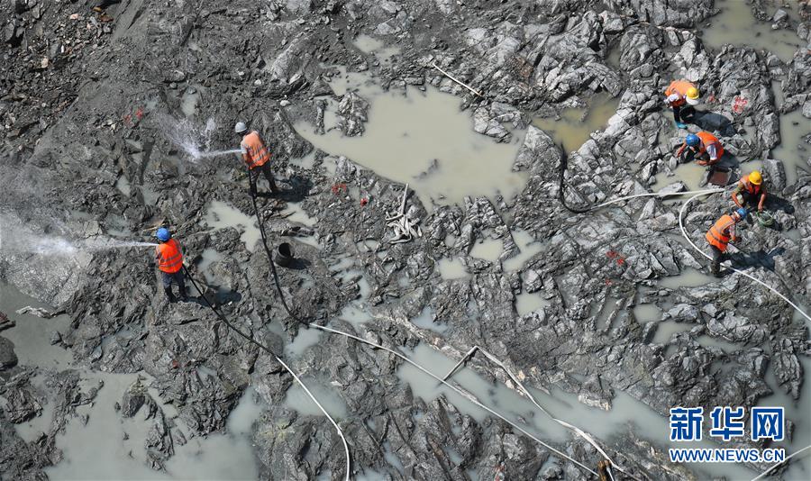 8月3日,工人在黃金峽水利樞紐電站基坑進(jìn)行巖面清理。盛夏時節(jié),在秦嶺深處的黃金峽水利樞紐工地上,施工人員冒著酷暑加班加點奮戰(zhàn),以確保今年11月進(jìn)行右岸二期截流。黃金峽水利樞紐壩址位于漢江干流上游峽谷段,是引漢濟(jì)渭工程的重要組成部分。新華社記者陶明攝