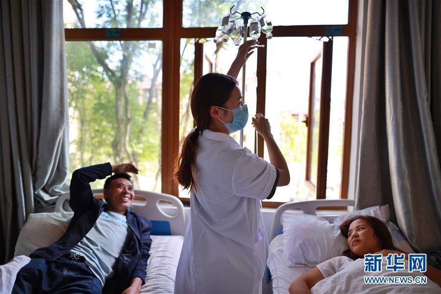 搬遷群眾在柏楊林易地扶貧搬遷安置點(diǎn)衛(wèi)生院內(nèi)治療(8月3日攝)。貴州省畢節(jié)市七星關(guān)區(qū)柏楊林易地扶貧搬遷安置點(diǎn)是畢節(jié)市最大的易地扶貧搬遷安置點(diǎn),總面積約1.1平方公里,從2017年開始至今,共有34個鄉(xiāng)鎮(zhèn)6372戶29001人安置到位。如今,安置點(diǎn)內(nèi)教育、醫(yī)療、就業(yè)扶貧車間、長幼日間托養(yǎng)照料中心等設(shè)施齊全,搬遷群眾在這里過上了安居樂業(yè)的幸福生活。新華社記者劉續(xù)攝