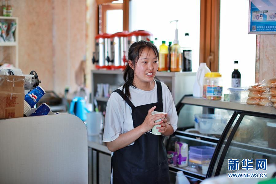 劉林在柏楊林易地扶貧搬遷安置點(diǎn)的一家奶茶店打工,她一個月可以掙2000多元(8月3日攝)。貴州省畢節(jié)市七星關(guān)區(qū)柏楊林易地扶貧搬遷安置點(diǎn)是畢節(jié)市最大的易地扶貧搬遷安置點(diǎn),總面積約1.1平方公里,從2017年開始至今,共有34個鄉(xiāng)鎮(zhèn)6372戶29001人安置到位。如今,安置點(diǎn)內(nèi)教育、醫(yī)療、就業(yè)扶貧車間、長幼日間托養(yǎng)照料中心等設(shè)施齊全,搬遷群眾在這里過上了安居樂業(yè)的幸福生活。新華社記者劉續(xù)攝