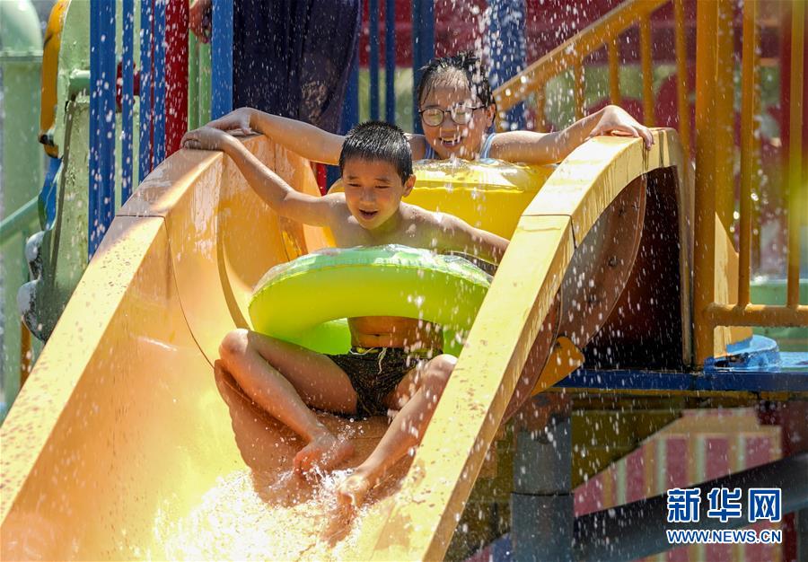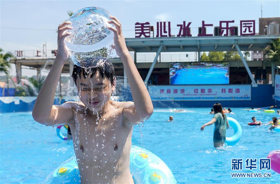 8月5日,重慶涪陵紅酒小鎮(zhèn)水上樂園內,市民在體驗水上游樂項目。當日,重慶市氣象臺再次發(fā)布“高溫橙色預警信號”,重慶大部分海拔400米以下地區(qū)日最高氣溫將升至37℃以上,局地可達40℃以上。許多重慶市民涌進當地的水上樂園和泳池,在水中享受夏季的清涼。新華社記者劉潺攝