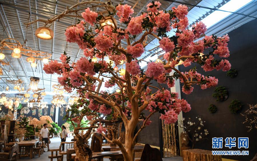 這是8月7日在永??h永安鄉(xiāng)根雕工藝品就業(yè)扶貧車間拍攝的根雕工藝品。2017年以來,廣西桂林市永??h永安鄉(xiāng)通過幫扶返鄉(xiāng)青年創(chuàng)業(yè)的方式,建立起根雕工藝品就業(yè)扶貧車間,組織貧困群眾進車間務工學藝,把當?shù)刎S富的朽木和柑橘樹根枝資源利用起來,加工成盆景、茶桌、吊燈等根雕工藝品,不僅幫助貧困群眾在家門口掌握一技之長,還讓他們在脫貧摘帽后實現(xiàn)穩(wěn)定增收。新華社記者張愛林攝