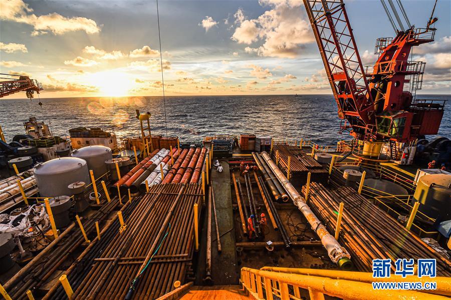 這是7月21日在南海北部海域拍攝的勘探三號鉆井平臺甲板。新華社記者蒲曉旭攝