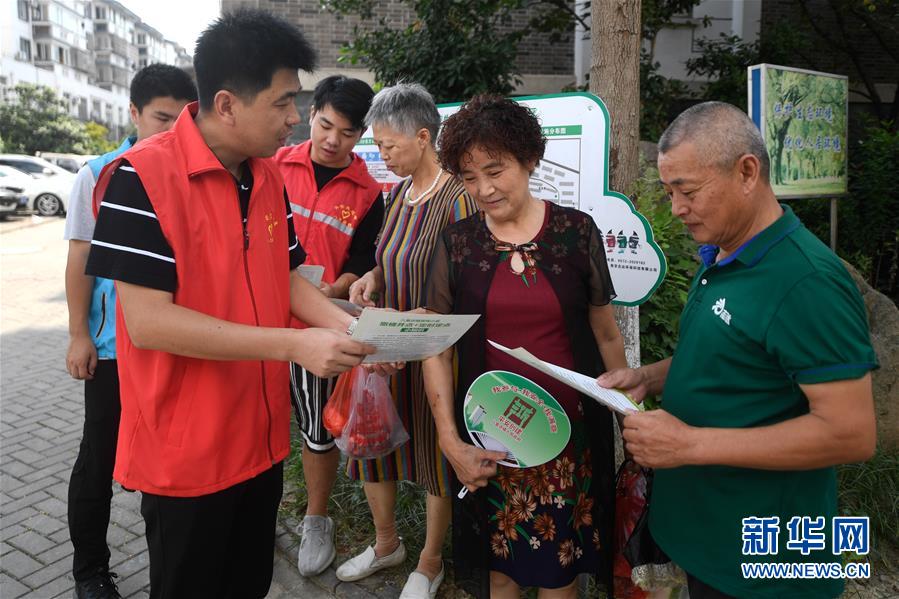 8月9日,湖州市吳興區(qū)八里店鎮(zhèn)志愿者(左)在百合苑小區(qū)向居民介紹生活垃圾定點投放的注意事項。近年來,浙江省通過創(chuàng)新宣傳教育,多措并舉促進(jìn)垃圾分類投放、收運(yùn)及處置的良性循環(huán),引領(lǐng)垃圾分類成為城鄉(xiāng)居民的生活新風(fēng)尚。新華社記者黃宗治攝。