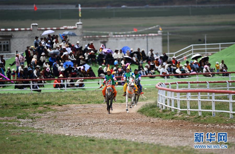 8月10日,騎手馳騁在當(dāng)雄縣賽馬場(chǎng)。