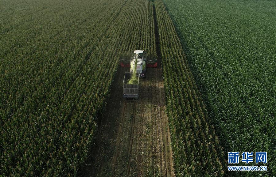 8月11日,灤南縣馬城鎮(zhèn)湛店子村的農(nóng)民使用大型機械收獲青貯玉米(無人機照片)。近日,河北省灤南縣的12萬畝青貯玉米陸續(xù)開始收獲,為當?shù)啬膛pB(yǎng)殖提供新鮮優(yōu)質(zhì)飼料。作為河北省奶牛養(yǎng)殖大縣,灤南縣近年來大力推廣奶牛青貯玉米喂養(yǎng)模式,引導農(nóng)民種植青貯玉米,促進農(nóng)民增收。新華社記者楊世堯攝