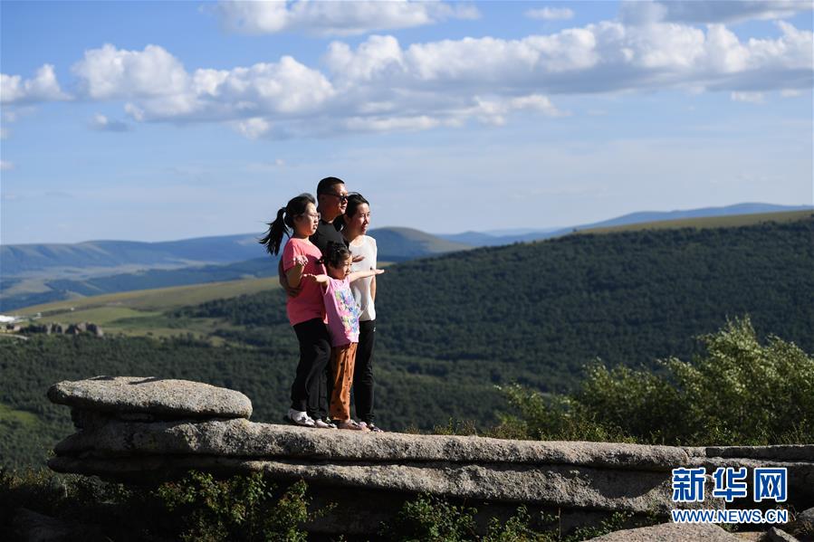 游客在克什克騰石陣景區(qū)拍照留影(8月11日攝)??耸部蓑v旗位于內(nèi)蒙古自治區(qū)赤峰市西北部,境內(nèi)的湖泊、河流、草原、森林等自然景觀,讓人們流連忘返。新華社記者劉磊攝