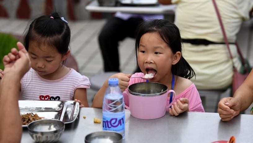 7月16日,在安徽省宿松縣洲頭鄉(xiāng)中心小學(xué)集中安置點(diǎn),教師志愿者輔導(dǎo)孩子們完成暑假作業(yè)。