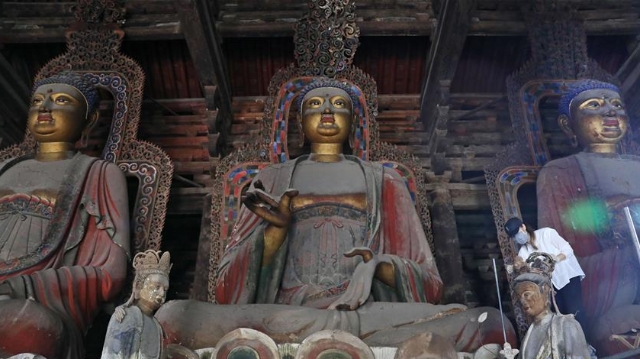 日前,建于1020年的遼寧錦州義縣奉國寺開始進行彩繪泥塑一期保護修復(fù)工程。