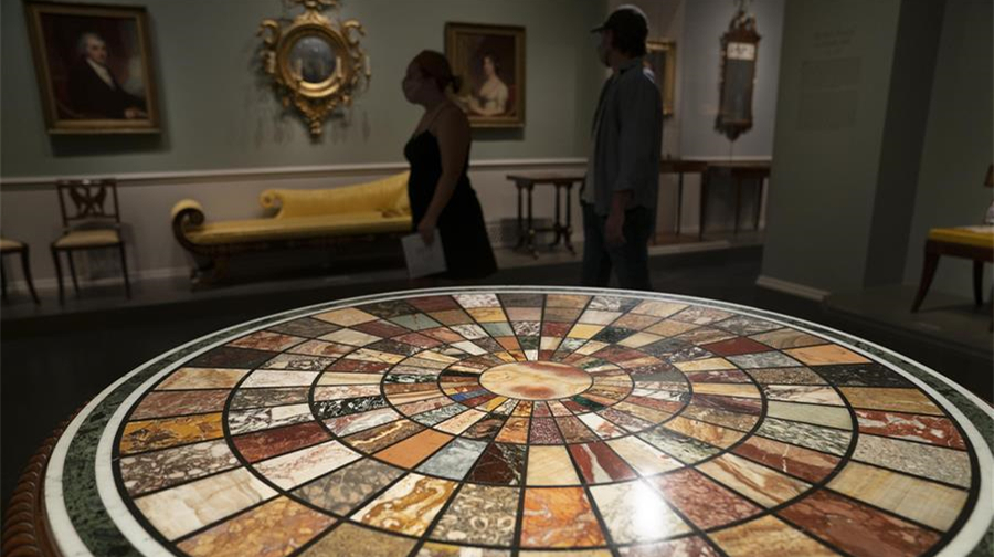 7月20日,觀眾在位于美國華盛頓的國家美術(shù)館參觀。當(dāng)日,美國國家美術(shù)館西館部分展廳開始重新對(duì)公眾開放。