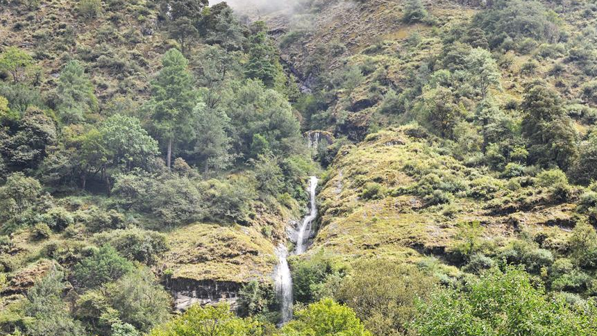 西藏山南市錯(cuò)那縣境內(nèi)波拉山南側(cè)的勒布溝,植被茂密、云霧繚繞,景觀豐富,美不勝收。