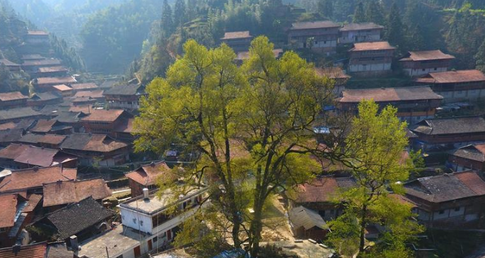 這是3月29日無人機拍攝的廣西融水苗族自治縣桿洞鄉(xiāng)黨鳩村的田園春色。