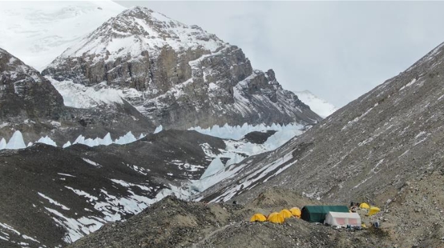 位于珠穆朗瑪峰腳下海拔5400米左右的中絨布冰川,巍峨壯觀,冰塔林托起世界最高峰,讓人嘆為觀止。