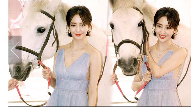 佟麗婭穿淡藍(lán)紗裙 與白馬合照甜美迷人仙氣十足