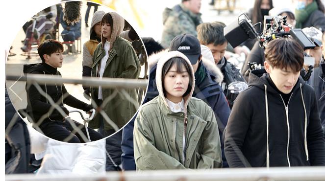 寒冷的北京,二人身著單薄的劇中服裝現(xiàn)身拍攝片場,不顧嚴(yán)寒超敬業(yè)。
