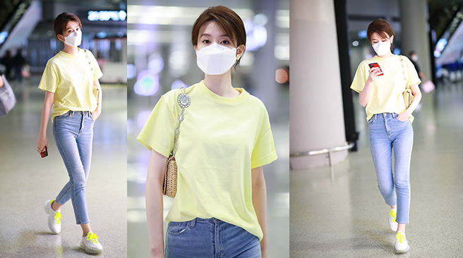 一秒入夏?喬欣私服穿搭堪稱“少女模板“ 黃色短T簡(jiǎn)約清新顯元?dú)饣盍?/h3>
