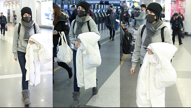 2019年1月5日,北京,袁泉現(xiàn)身機(jī)場(chǎng)。