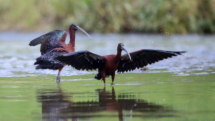 近日,國家二級保護(hù)動物彩鹮現(xiàn)身陜西省漢中市漢江濕地公園濂水河與漢江交匯處。
