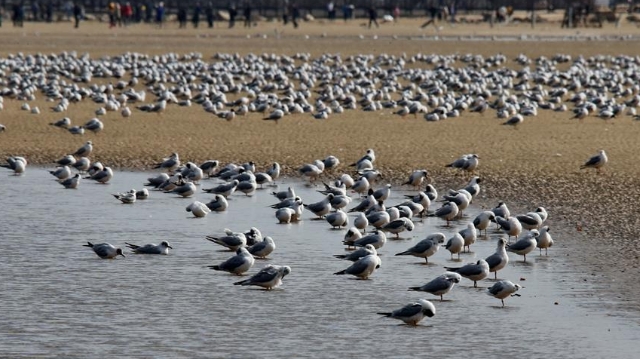 近日,大批候鳥飛抵河北省秦皇島市沿海濕地,出現(xiàn)“萬(wàn)鳥臨?!逼嬗^。