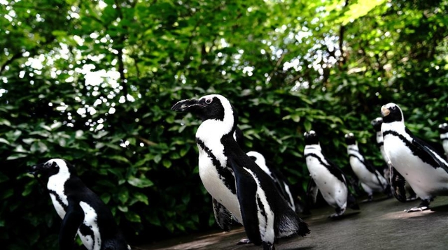 端午小長假第二天,上海動物園開展“企鵝漫步科普行”活動,受到游客歡迎。