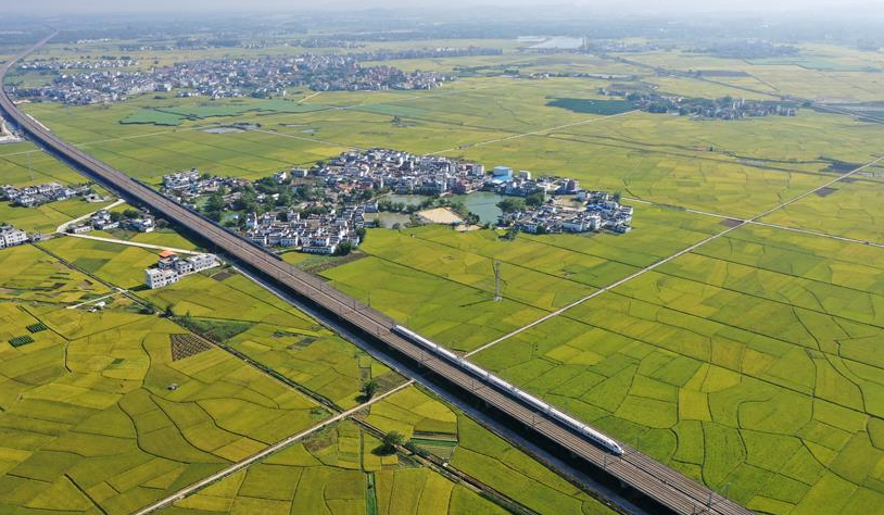 眼下,廣西賓陽縣古辣鎮(zhèn)大面積稻田進(jìn)入收獲期,一列列南來北往的動(dòng)車從稻田間飛馳而過,構(gòu)成一幅幅美麗的豐收?qǐng)D畫。