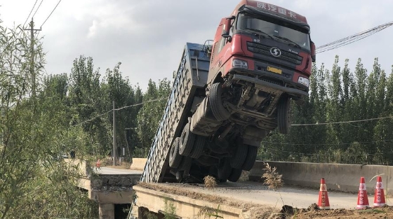 山東濱州:一大貨車壓塌限重4噸橋梁