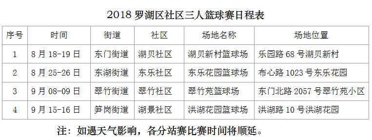 “2018羅湖區(qū)社區(qū)三人籃球賽”分成四個(gè)分站賽。目前,羅湖區(qū)東門街道湖貝社區(qū)的“東門站”首場分站賽已決出勝負(fù),接下來的三個(gè)分站賽地點(diǎn)分別是羅湖區(qū)東湖街道東樂社區(qū)、羅湖區(qū)翠竹街道翠竹社區(qū)和羅湖區(qū)筍崗街道湖景社區(qū)。