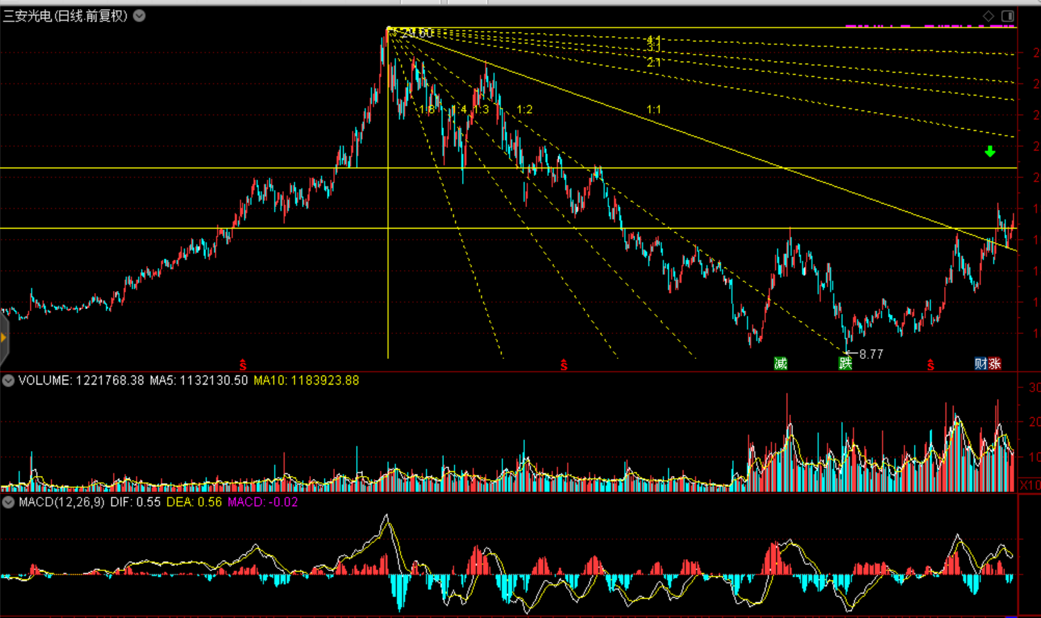 操作建議:隔夜歐美股市全線(xiàn)下跌,對(duì)于短期有企穩(wěn)跡象的A股有一定影響,北向資金連續(xù)14日凈流入顯示A股具備較強(qiáng)吸引力,今日是檢驗(yàn)A股成色的時(shí)間,預(yù)計(jì)股指小周期延續(xù)企穩(wěn)反彈格局,滬綜指半年線(xiàn)(2950點(diǎn)一線(xiàn))、創(chuàng)業(yè)板1700點(diǎn)一線(xiàn)構(gòu)成反彈壓力;財(cái)政部發(fā)布《中華人民共和國(guó)消費(fèi)稅法(征求意見(jiàn)稿)》,白酒加征消費(fèi)稅(0.5元每500克)利空白酒板塊,短期謹(jǐn)慎高位白馬股調(diào)整風(fēng)險(xiǎn)。近期低位品種漸顯反彈跡象,低位重組、新能源汽車(chē)、燃料電池及高校概念(方正集團(tuán)引入央企或設(shè)計(jì)控制權(quán)變更)活躍反應(yīng)部分資金棄高就低,開(kāi)始挖掘低位品種的主題投資機(jī)會(huì)。此外對(duì)于半導(dǎo)體板塊中部分已經(jīng)擺脫底部、走趨勢(shì)性上揚(yáng)龍頭公司仍然值得跟蹤,如600703三安光電、300458全志科技等。