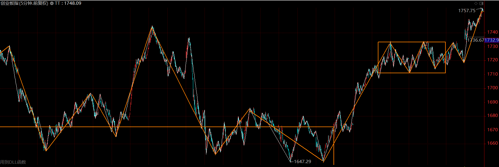 創(chuàng)業(yè)板本周創(chuàng)下八個(gè)月新高,完成了歐奈爾杯柄的一次突破,下一步要面臨1792點(diǎn)的前高大壓力位。日K線看,這個(gè)位置需要橫盤(pán)整固一段時(shí)間,同時(shí)也利于構(gòu)建下方中樞的第三類買(mǎi)點(diǎn)。小級(jí)別看,同樣是運(yùn)行良好的多頭趨勢(shì),目前在背馳段里,本周初的回踩只要不跌破1735點(diǎn),均可以安心持股待漲。