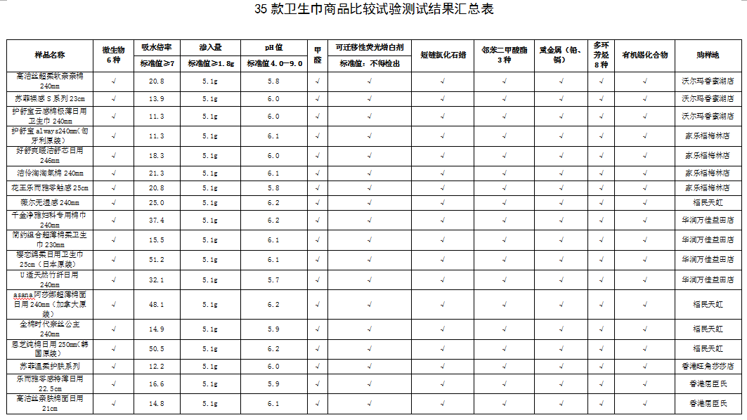 2018年衛(wèi)生巾產(chǎn)品比較試驗(yàn)報(bào)告發(fā)布 35款衛(wèi)生巾產(chǎn)品可放心選購(gòu)