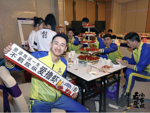 參加球迷見面會(huì)的排球運(yùn)動(dòng)員們在見到香酥可口的小龍蝦后,都忍不住立馬品嘗,對(duì)龍蝦的味道是贊不絕口,并主動(dòng)和小龍蝦共同合影留戀。
