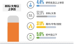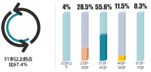 本次調(diào)研中,家政公司消費(fèi)者中,31歲-45歲是主要消費(fèi)者,占比55.6%,31歲以上的消費(fèi)者占比為67.4%。;57.4%的受訪者學(xué)歷為本科/大專及以上 。