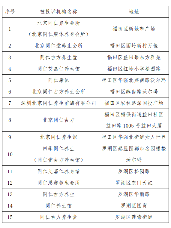 具體被投訴機(jī)構(gòu)名單(由消費(fèi)者提供的名稱及地址)如下: