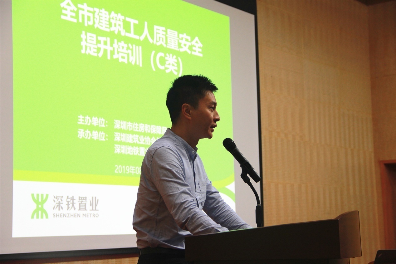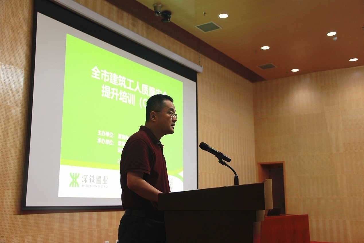 深圳市住房和建設(shè)局建筑市場(chǎng)和招標(biāo)投標(biāo)監(jiān)管處副處長(zhǎng)董亮首先對(duì)一線工人表示親切的慰問(wèn),并對(duì)深圳地鐵置業(yè)集團(tuán)積極響應(yīng)政府號(hào)召,扎實(shí)落實(shí)工人安全質(zhì)量培訓(xùn)工作表示肯定。本次培訓(xùn)是市住建局建筑工人質(zhì)量安全培訓(xùn)提升工作方案的重要組成部分,接下來(lái)將在全市全面推行A、B、C、D、E五類培訓(xùn)。由政府、企業(yè)、協(xié)會(huì)、培訓(xùn)機(jī)構(gòu)四方力量共同攜手推進(jìn)崗前崗后、場(chǎng)內(nèi)場(chǎng)外、線上線下培訓(xùn)教育工作。今后,未經(jīng)過(guò)系統(tǒng)教育培訓(xùn)的工人將禁止進(jìn)入深圳市建筑市場(chǎng)。