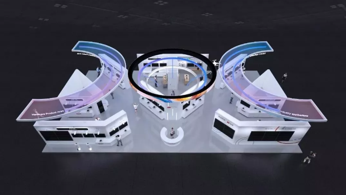 展臺的吊頂設計以“COC”形狀為主體,引發(fā)讀者眾多猜想,包括“CloudOFCity城市之云”、“AICloud三級架構”、“物信融合”、“CalculateOnCloud”等。