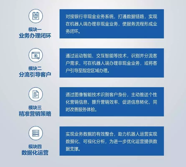 人工智能機器人與金融業(yè)務的完美結(jié)合,助力加速金融網(wǎng)點智能化建設、提升營銷效率、豐富金融營銷場景。