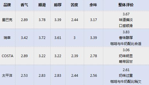而20位咖啡達(dá)人對4款美式咖啡的整體風(fēng)味評價(jià)也不盡相同:瑞幸有適度的酸度,具有水果及焦糖風(fēng)味,接受程度最高;星巴克煙感重,咖啡本身甜感低;COSTA煙感及陳味明顯,酸酐較強(qiáng),咖啡甜感低;太平洋入口微苦甜感低,酸苦較平衡。