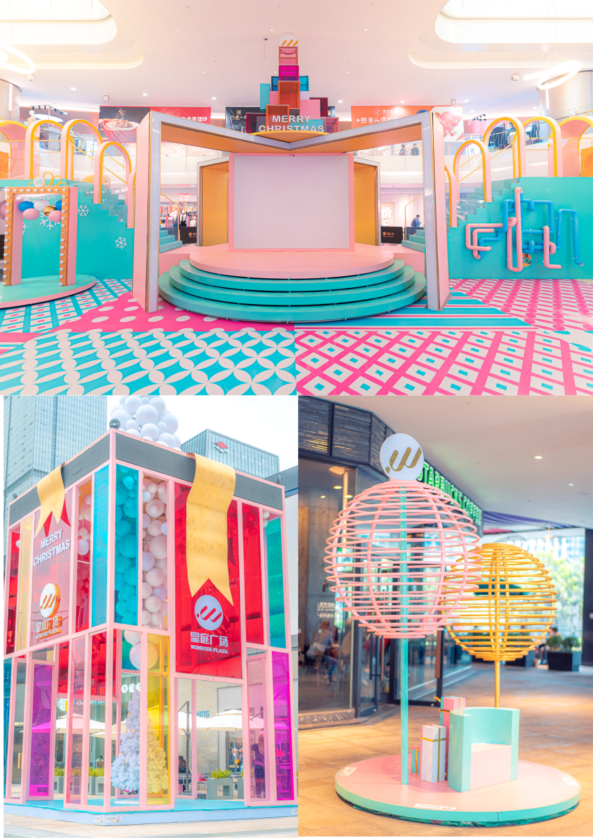 ‘幻’“奇幻世界”圣誕美陳展:深圳皇庭廣場6周年用一場主題為“奇幻世界”的圣誕主題拉開圣誕節(jié)的唯美序幕。利用一系列馬卡龍色調(diào)、色彩繽紛的大型發(fā)光水晶禮物盒、波波池、、滑滑梯等充滿童年歡樂的記憶,開啟沉浸式的圣誕節(jié)體驗之旅,即將演繹一場既浪漫又純真的夢幻時空,絢麗多彩,如夢如幻。