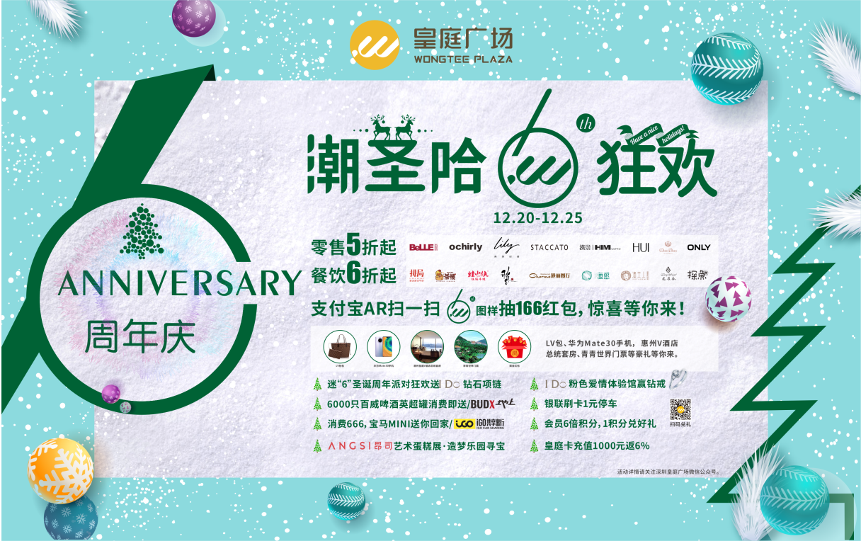 在一定程度上,深圳皇庭廣場如今所綻放出來的光彩,不僅在于與會員的完美互動,更得力于超30萬會員的一路相隨,攜手共進(jìn)。6周年慶,一方面為感恩所有皇庭廣場會員,展開“會員購物享6倍積分”、“1積分兌禮”等全城返利行動,返利幅度之大吸引眾多高積分顧客參與,有效提高客單價。另一方面,持續(xù)刺激顧客消費,更有12月21日購皇庭卡享超級返利等大力度活動,持續(xù)帶動人氣、擴(kuò)大宣傳影響。
