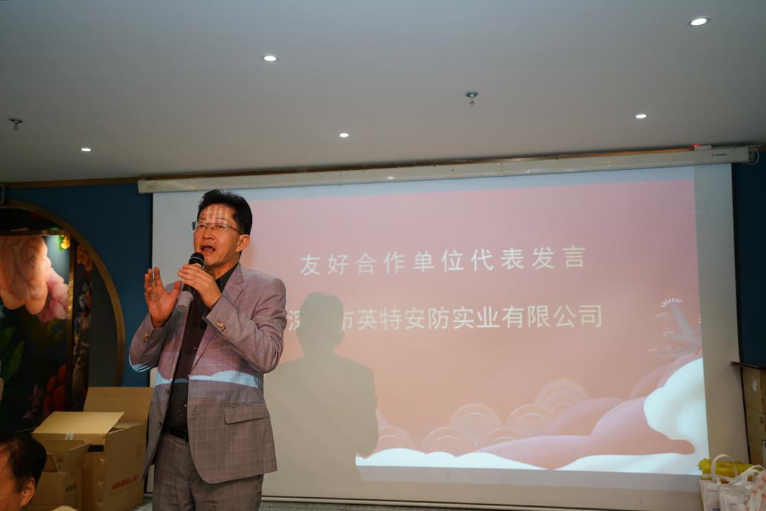 晚宴上,學(xué)會(huì)表彰了6家友好合作單位以資感謝支持,并邀請了其中的來自深圳市英特安防實(shí)業(yè)有限公司閆建國總經(jīng)理代表發(fā)言。