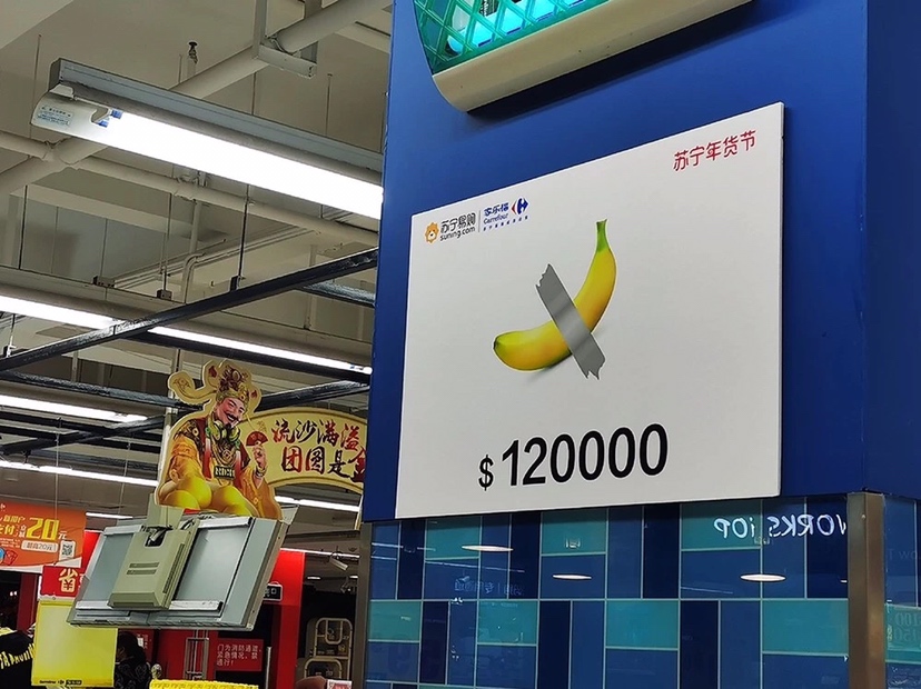 售價12萬美元的香蕉你見過嗎?反正 小編 今天在家樂福 華南區(qū)門店 見到了!這可是從美國巴塞爾藝術展 引進的行為藝術。 獲此靈感,蘇寧版“天價年貨” 應運而生!