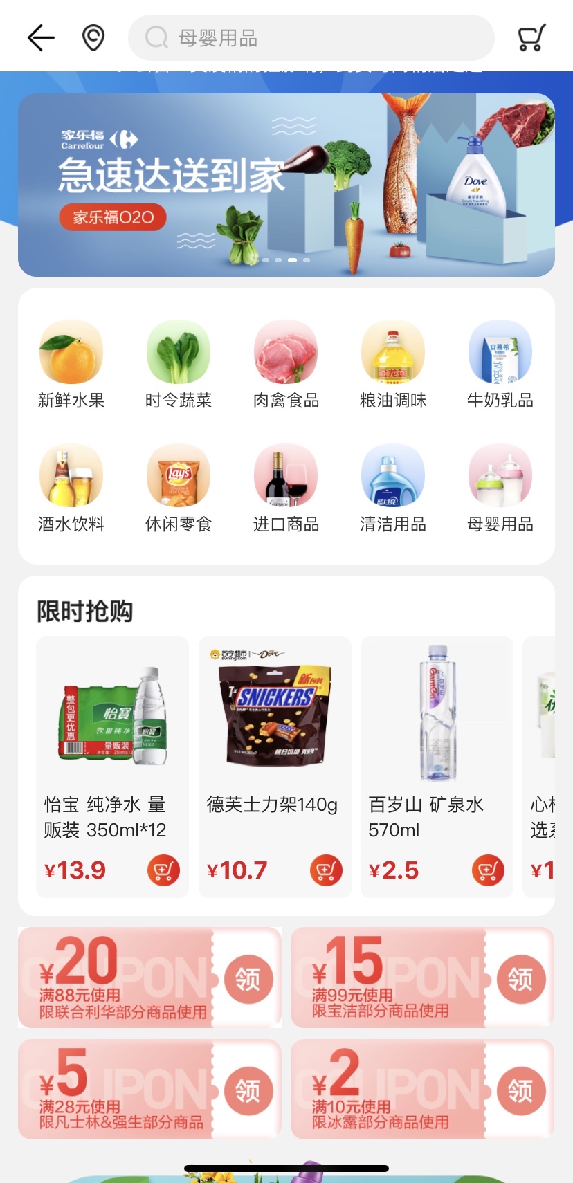在商品方面,家樂?!巴桥洹狈?wù)覆蓋時令生鮮、糧油調(diào)味、酒水飲料、休閑零食、母嬰用品、個護清潔、家居百貨、各種進口商品等,全面保障消費者的物資供應(yīng)。