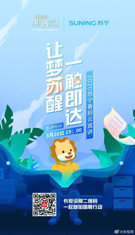 作為與民生、就業(yè)密切相關的大型零售企業(yè),蘇寧早在2月8日便啟動了無接觸春招,3月20日,蘇寧更是通過央視頻國聘行動開啟線上宣講。目前,線上面試與offer發(fā)放正在持續(xù)進行中。