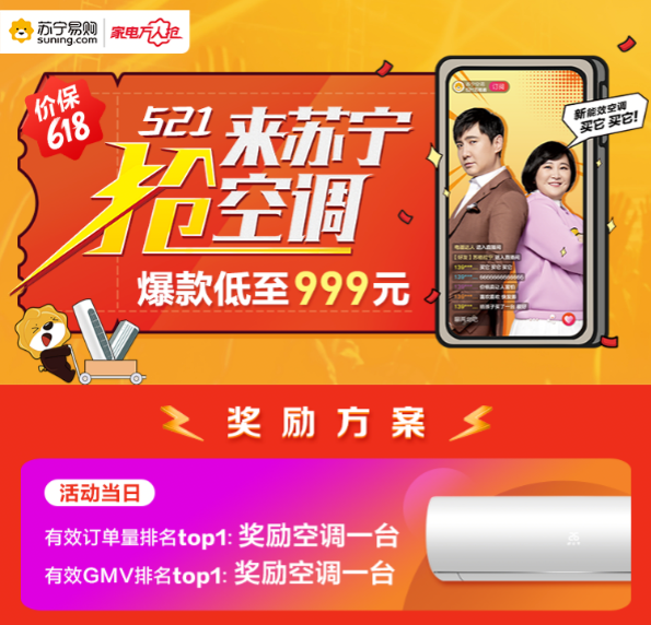 此外,此次搶空調(diào)期間,蘇寧還將以“萬(wàn)人帶貨王”的帶單獎(jiǎng)勵(lì)活動(dòng),依托蘇寧推客、蘇小團(tuán)等社交平臺(tái),邀請(qǐng)廣大網(wǎng)友為空調(diào)帶貨。多款熱銷空調(diào)均設(shè)有高傭金獎(jiǎng)勵(lì),實(shí)際帶單數(shù)量最多和帶單數(shù)額最高的“帶貨王”均可獲得1臺(tái)空調(diào)作為獎(jiǎng)勵(lì)。