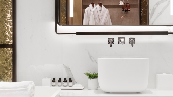 夜幕降臨,賓客可慵懶地置身浴缸之中,閉目享受由B&O音響帶來的音樂廳般沉浸式體驗。或從飄臺取過剛剛煮好的香茗,讓茶香雅韻充盈唇齒。酒店備好的浴品套裝,將讓賓客從發(fā)絲到肌膚,皆浸潤于LE LABO的香氛宇宙,奢寵體驗無與倫比。