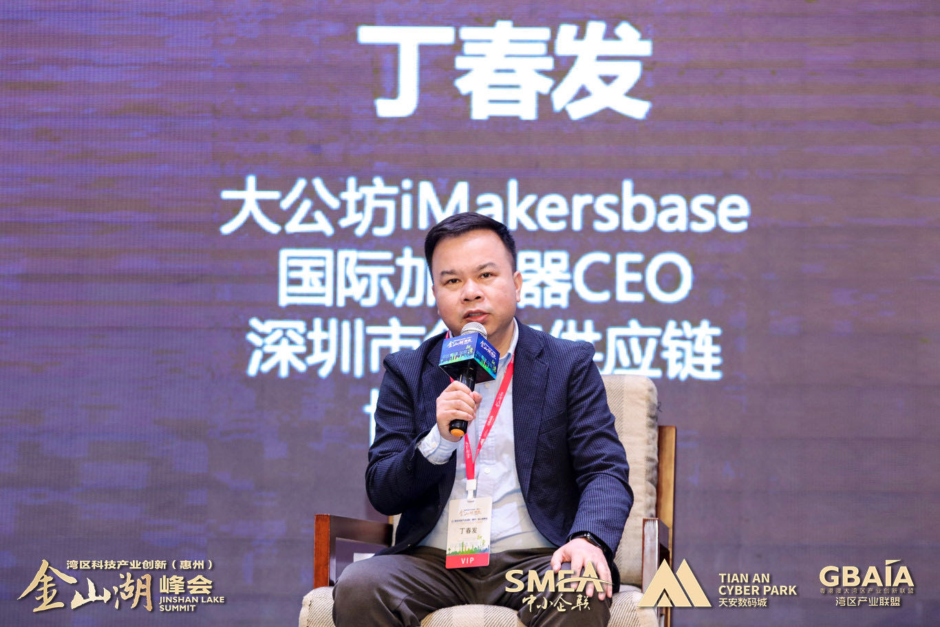 大公坊iMakerbase國(guó)際加速器CEO、深圳市創(chuàng)客供應(yīng)鏈協(xié)會(huì)會(huì)長(zhǎng)丁春發(fā)發(fā)言