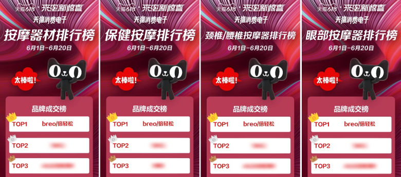 倍輕松的產(chǎn)品地位從創(chuàng)新、科技上很好地體現(xiàn)出來,而更重要的是在消費(fèi)市場上,倍輕松仍占據(jù)了便攜式按摩器行業(yè)的重要份額。自倍輕松宣布肖戰(zhàn)成為全球代言人以來,這家21年高端按摩器品牌在線上銷售數(shù)據(jù)十分優(yōu)異,在目前中國購物網(wǎng)站巨頭的天貓、京東平臺(tái)榮獲多個(gè)品類排行榜第一。在618這個(gè)重要的消費(fèi)日節(jié)點(diǎn),倍輕松輕易獲得京東開門紅,僅4天就達(dá)到全網(wǎng)銷售額過億的成績。不僅在線上,倍輕松布局的線下門店多達(dá)150+家,各大機(jī)場、高鐵站、shopping mall均可以看到倍輕松的身影。據(jù)官方數(shù)據(jù),倍輕松在2021年上半年天貓平臺(tái)榮獲眼部按摩器單品品類排行榜第一如此以來,可以說倍輕松是便攜式按摩器線上平的領(lǐng)軍品牌。