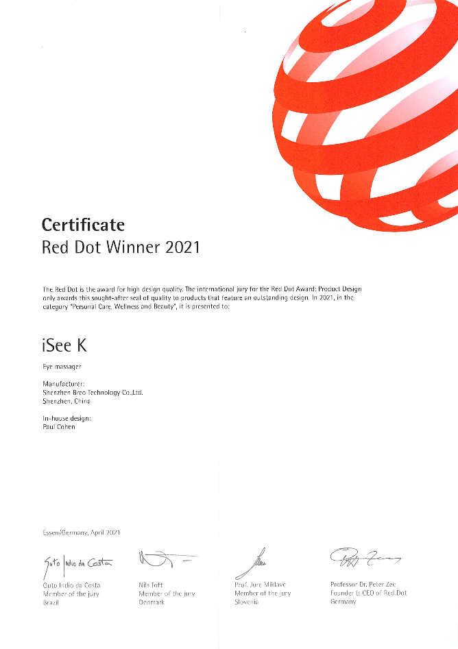 2021年倍輕松眼部按摩器iSee K榮獲紅點(diǎn)設(shè)計(jì)獎(jiǎng)